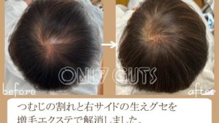 【愛知】美容室オンリーガッツ 2箇所の割れ目を増毛エクステでカバーする方法 今回の記事ではつむじの割れ目からサイドの割れ目が繋がって割れる、広い透け感を増毛エクステで解決した記事です。 2025.12.03 【愛知】美容室オンリーガッツ